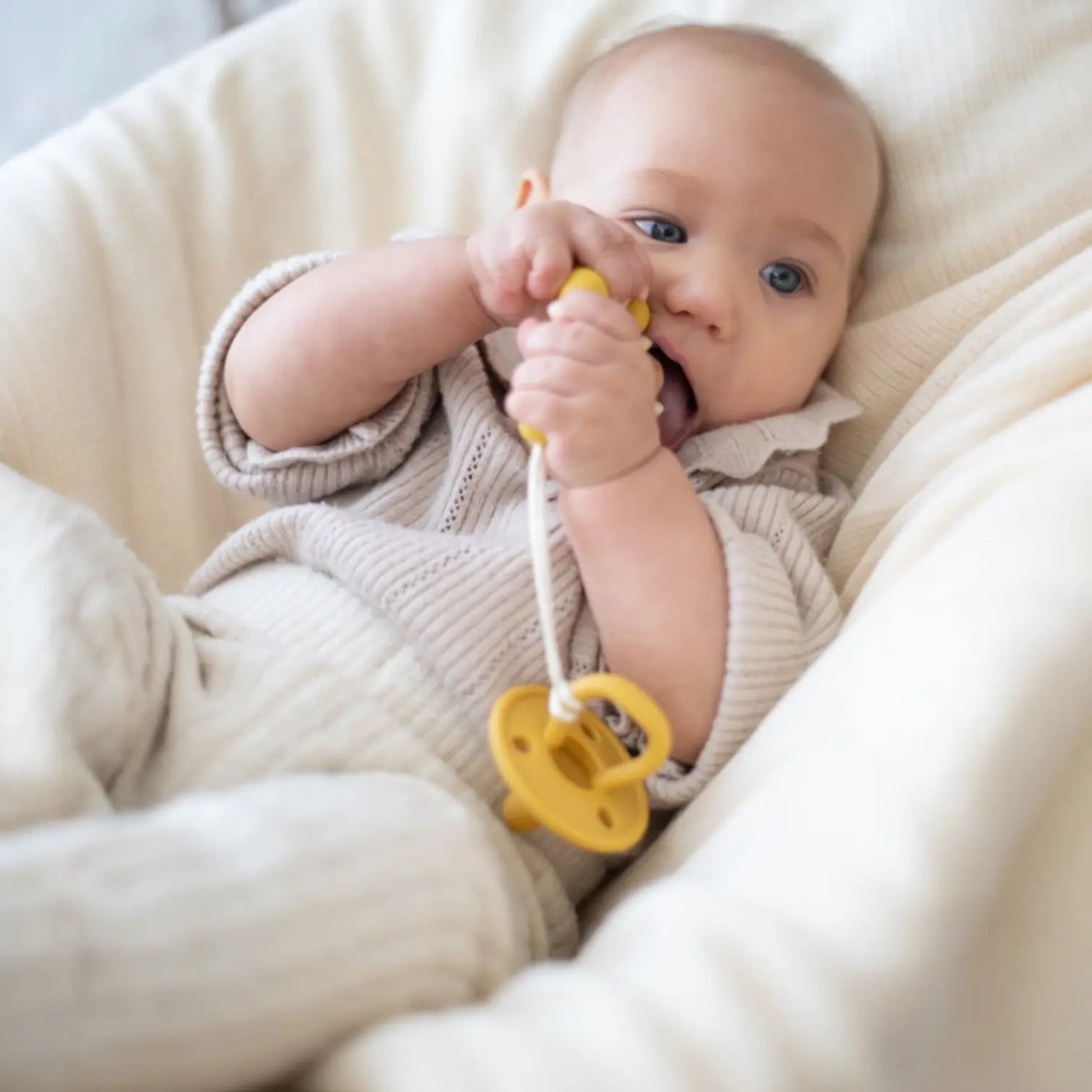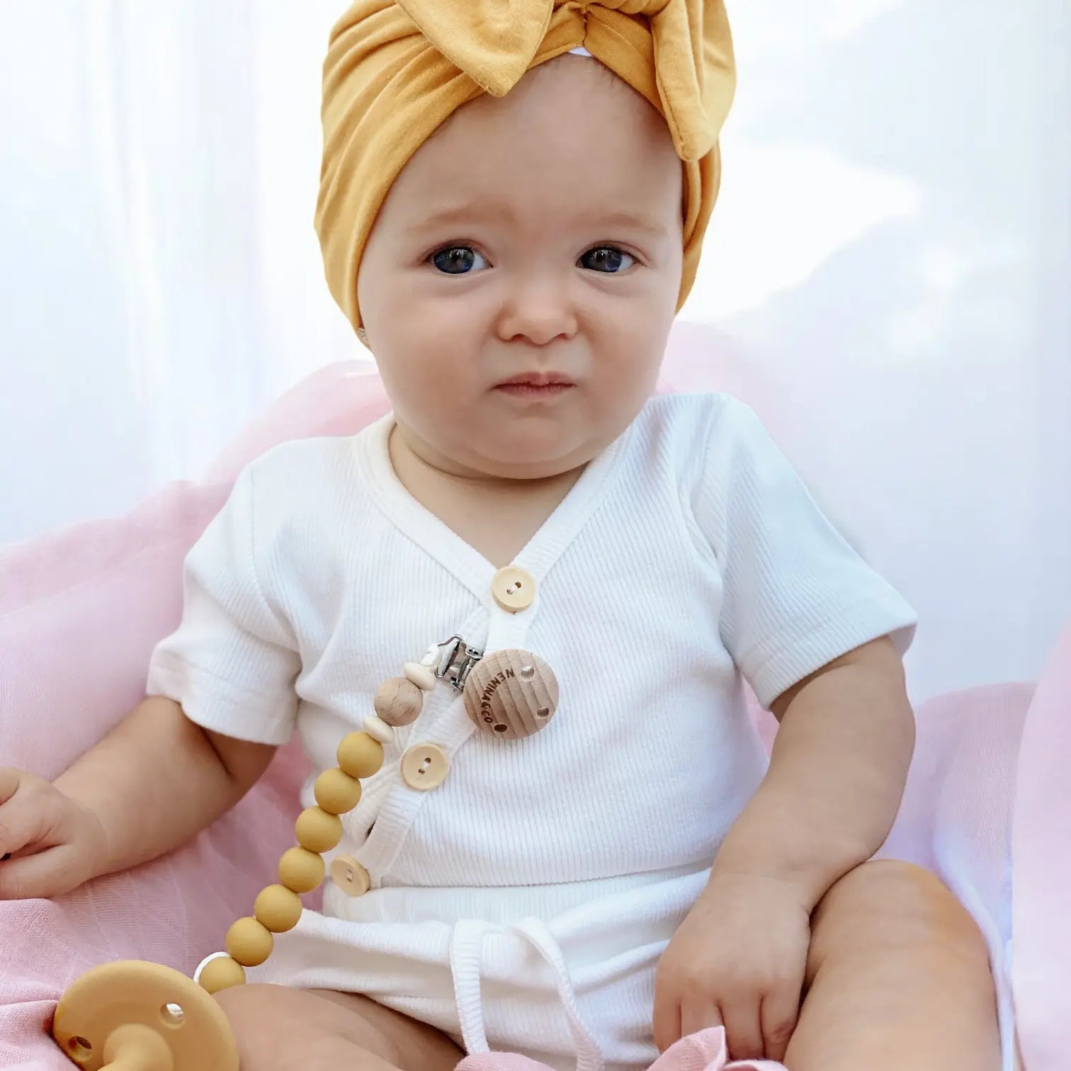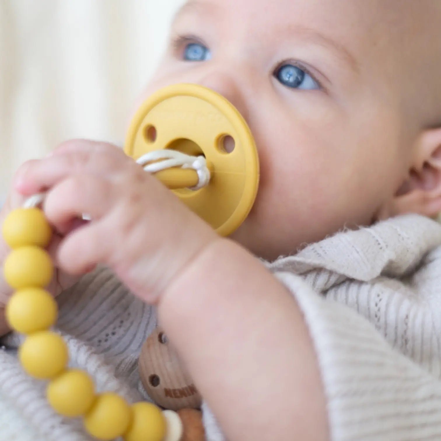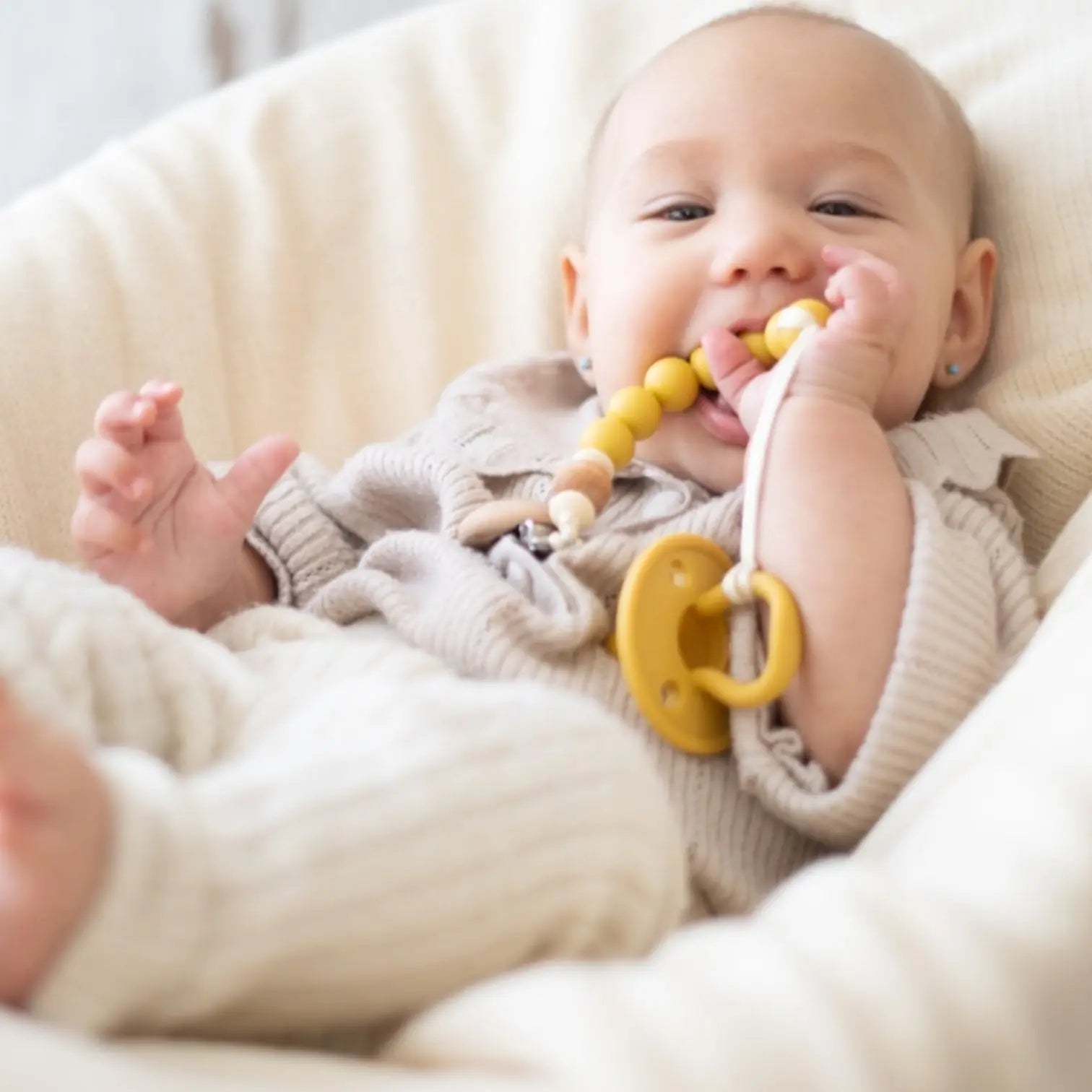 Confeccionado con materiales de alta calidad, este chupetero es más que un accesorio de moda; también sirve como mordedor para las encías de tu bebé.